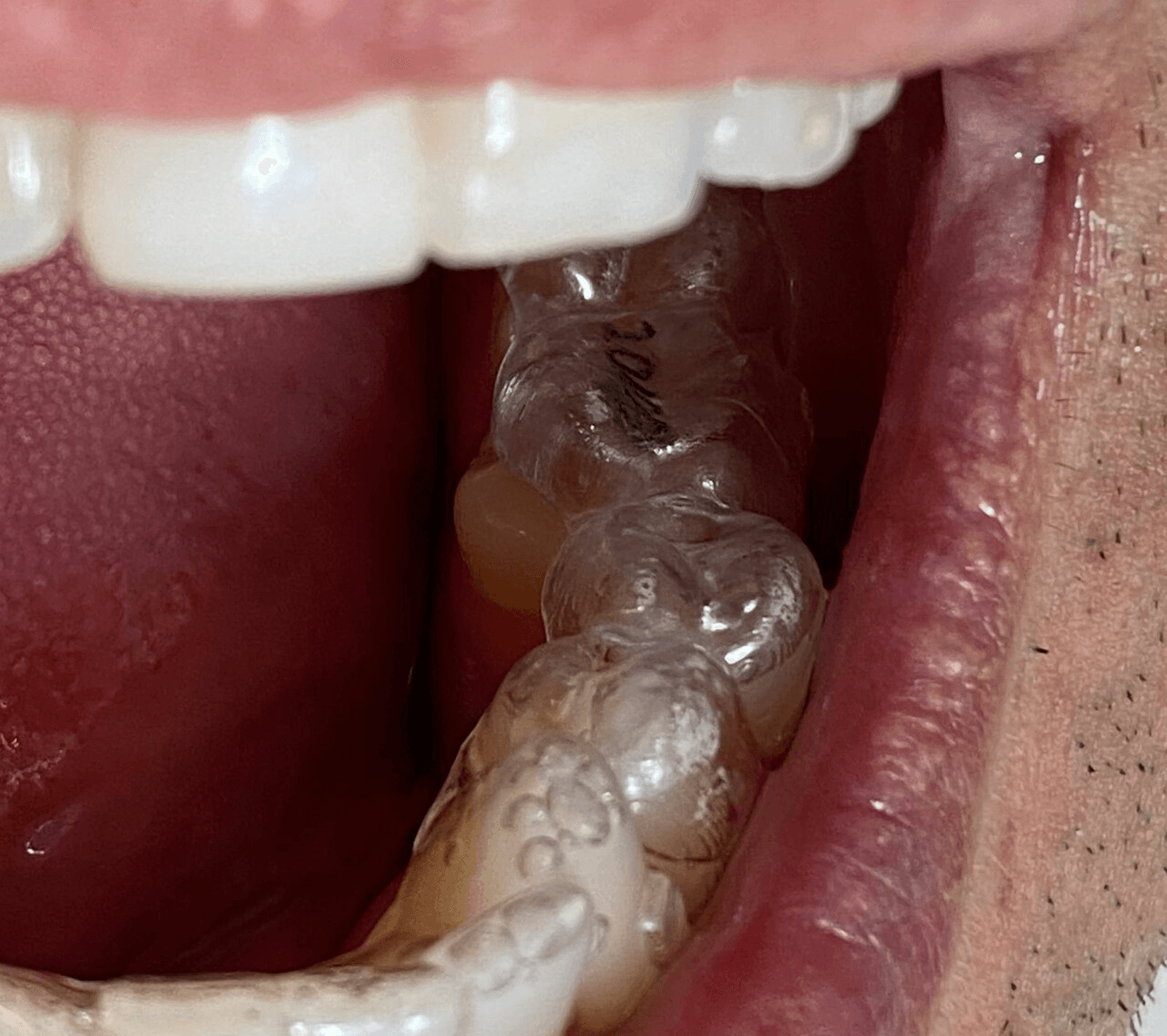 Caso na região posterior esteja desadaptada, observar se o encaixe na região foi correto, se não ocorreu alguma** deformidade no alinhador, como amassar ao encaixar**. Se sim, recomendaríamos** reconfeccionar esse alinhador ou desgastar a região** que está com o problema pois a deformidade pode prejudicar o andamento do caso.