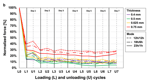 Inspecionar o estado do alinhador, verificando por áreas esbranquiçadas, mais foscas ou sinais de deformação devido ao excesso de força para encaixar o alinhador principalmente em pacientes mais retentivos. Pedir ao paciente para não jogar fora os alinhadores usados para que seja possível realizar essa avaliação nas consultas,** no evento do paciente perder alguma placa ou voltar fase, não use uma placa que já foi usada no seu paciente, pois a placa após dias de uso perdem suas propriedades e funções** fazendo com que os movimentos alcançados sejam perdidos, recomendamos que reconfeccione a placa.